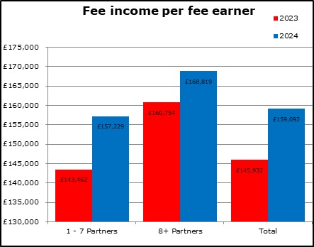 Fee income per fee earner has also increased by 9% upon last year, now averaging £159k.
